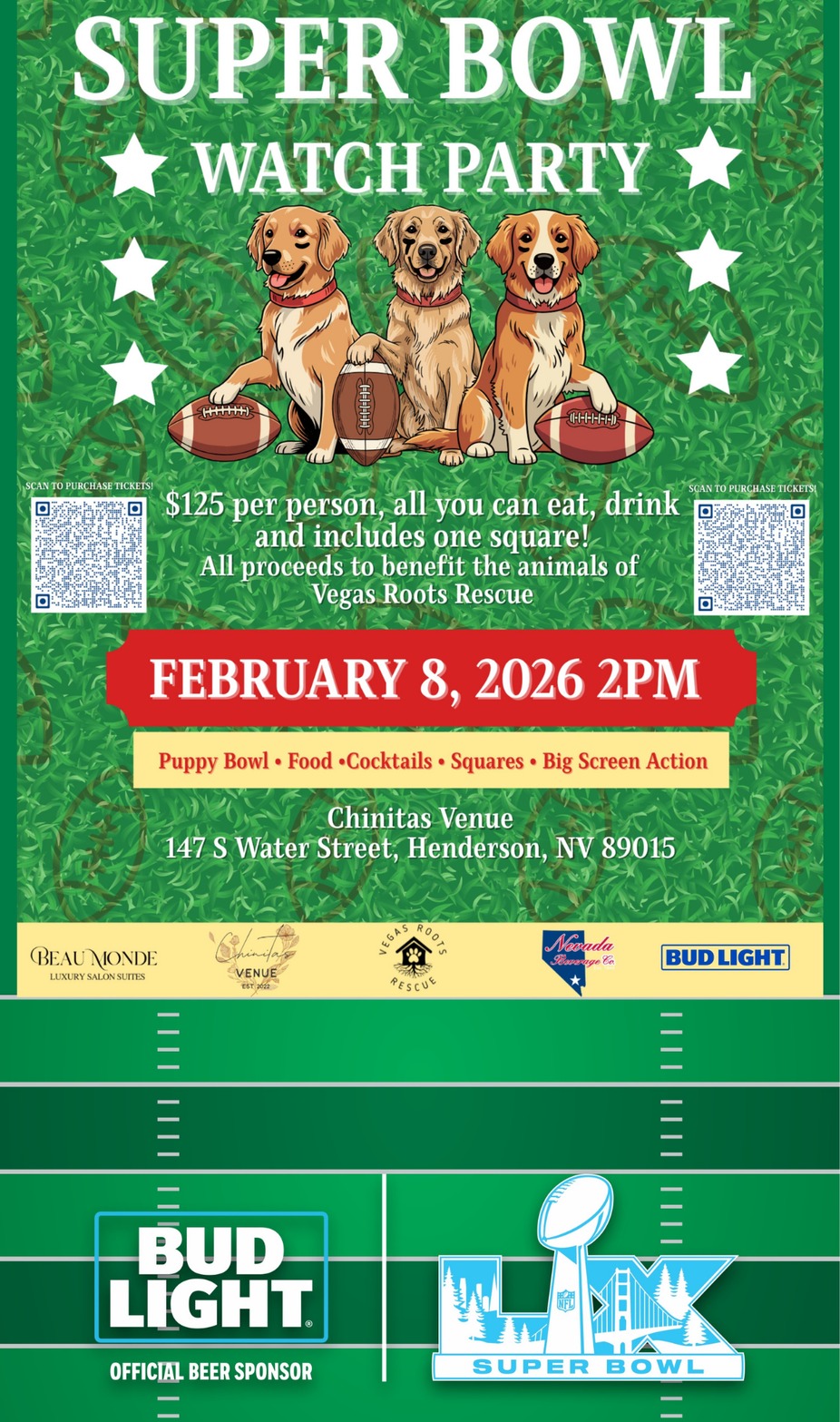 Join us for the Super Bowl Watch Party for the Pups happening at Chinitas Tapas & Sushi! Get ready to enjoyÂ