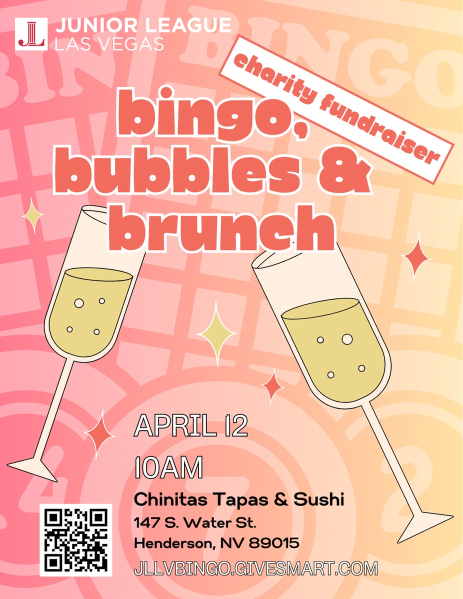 BINGO. BUBBLES. & BRUNCH. Join us on Saturday, April 12, 10:00 AM-1:30 PM at Chinitas Tapas & Sushi for a morning of fun, food, and fabulous prizes.