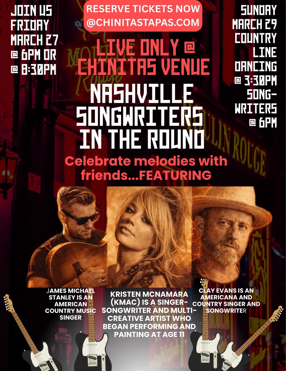 James Michael Stanley Kristen McNamara (KMAC) Clay Evans What is “Songwriters in the Round”?