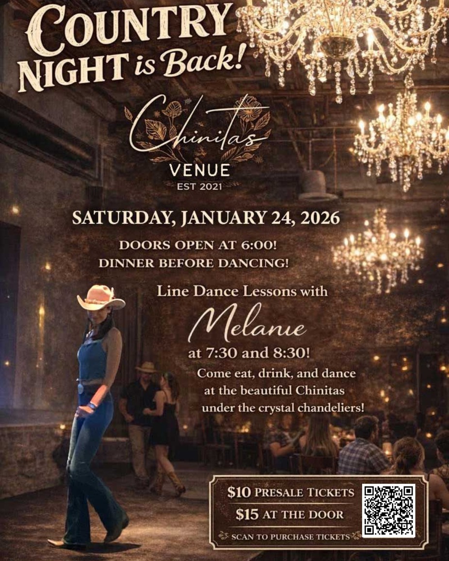Whether you’re a seasoned line dancer or just looking for a fun night out, Country Night at Chinitas is the perfect mix of music, movement, and great vibes.