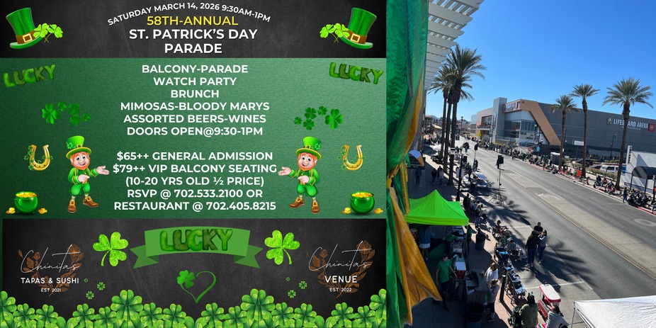 Join us for a dazzling celebration at the 58th Annual St. Patrick's Day Parade Party! Experience a morning full of festive fun with the best view for the parade!